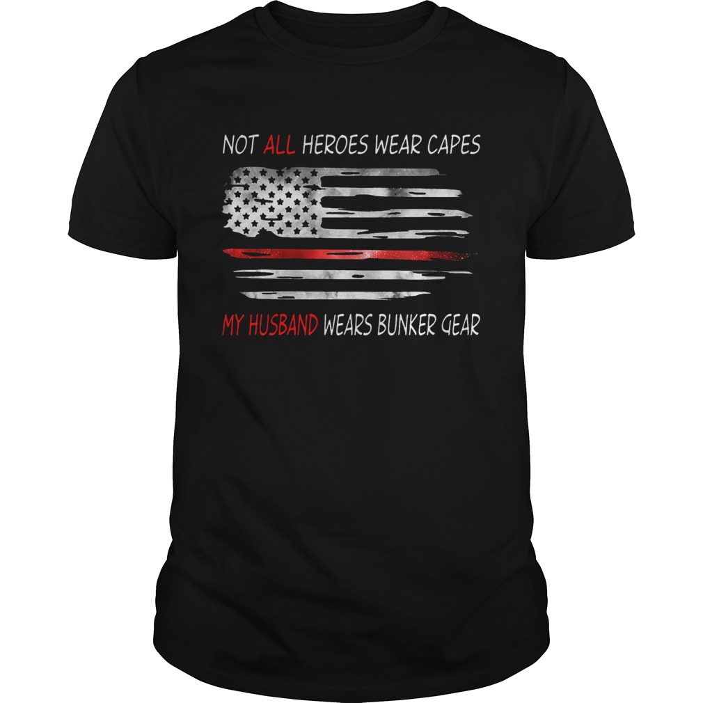 American Flag Not All Heroes Wear Capes My Husband Wears Bunker Gear shirt, hoodie, sweater, longsleeve and ladies t-shirt