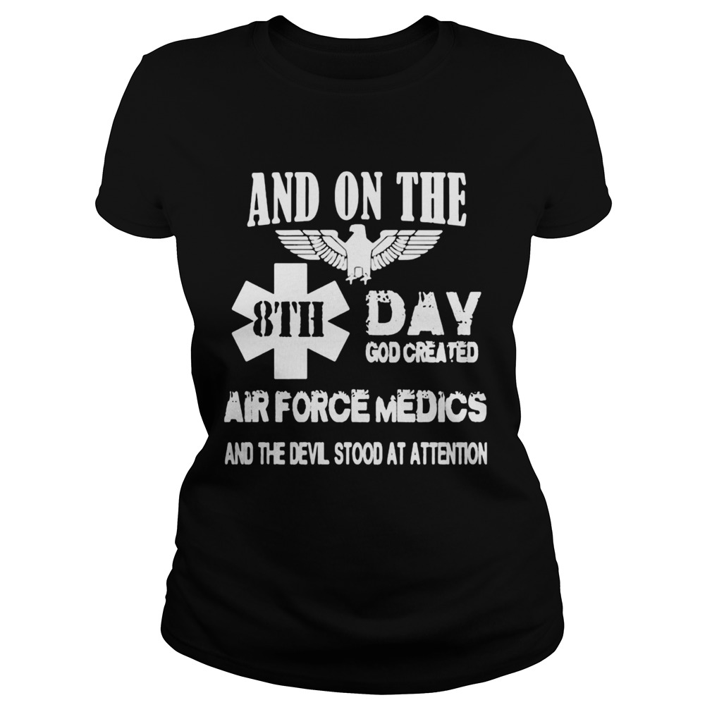 And on the 8th day god created air force medics and the devil stood at attention shirt, hoodie, sweater, longsleeve and ladies t-shirt