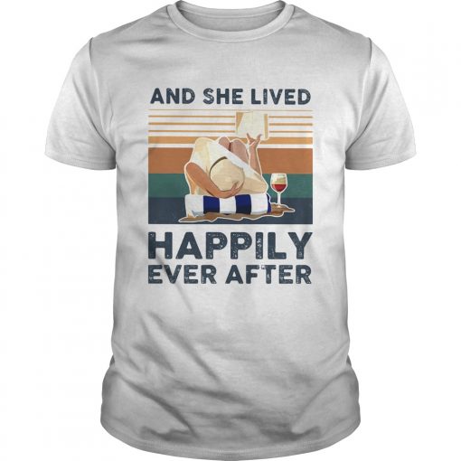 And She Lived Happily Ever After Lying Down Reading Cup Of Wine shirt, hoodie, sweater, longsleeve and ladies t-shirt