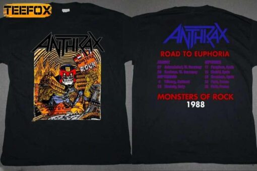 The Anthrax Road To Euphoria Monster Of Rock Tour 1988 Short-Sleeve T-Shirt is not just a piece of clothing; it’s a time machine that transports you back to the golden era of rock music. This vintage-inspired design pays homage to the legendary 1988 tour that left a mark on music history. The bold graphics and vibrant colors capture the essence of the era, making it a must-have for any rock music enthusiast. Whether you’re attending a concert, hanging out with friends, or simply want to make a statement, this t-shirt is the perfect choice to showcase your love for classic rock.