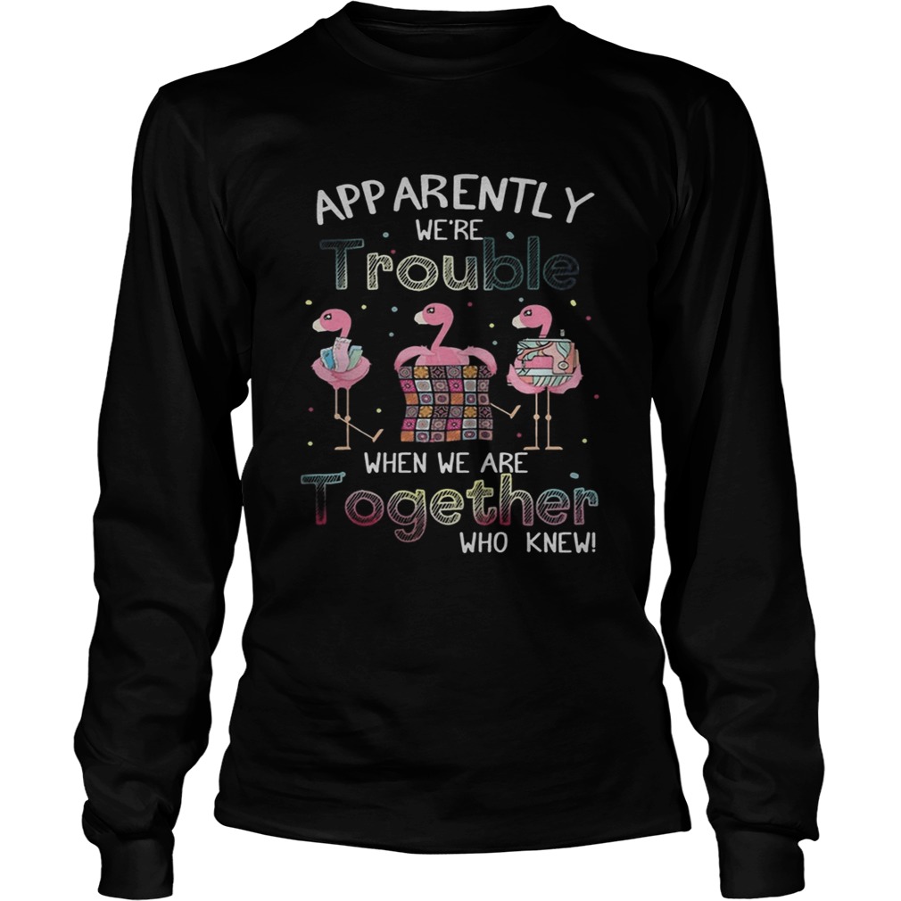 Apparently we’re trouble when we are together flamingo quilting shirt, hoodie, sweater and tank top