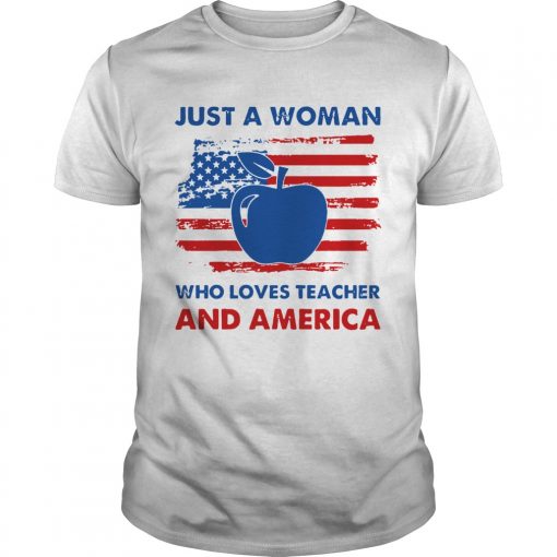 Apple Just A Woman Who Loves Teacher And America shirt, hoodie, sweater, longsleeve and ladies t-shirt