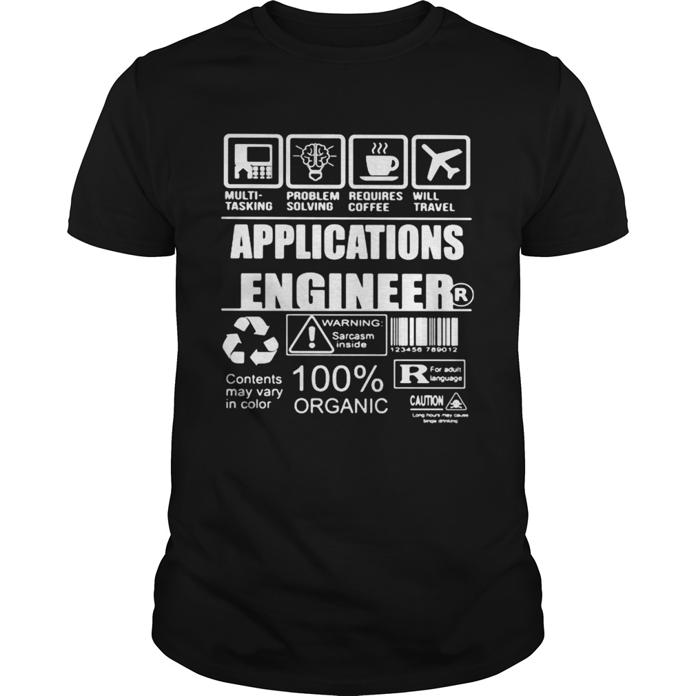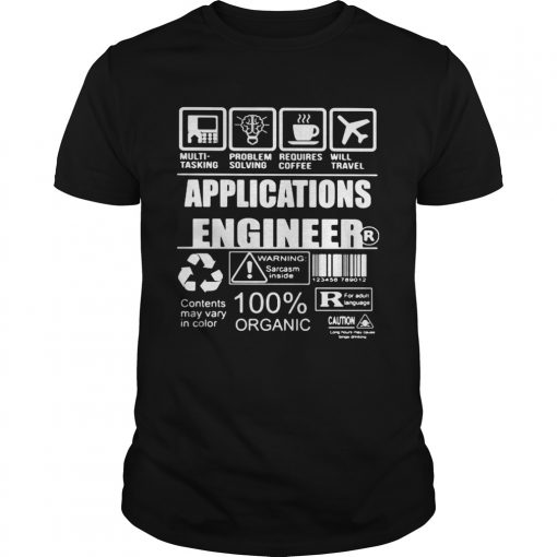 Application engineer warning sarcasm inside contents may vary in color 100 organic shirt, hoodie, sweater, longsleeve and ladies t-shirt