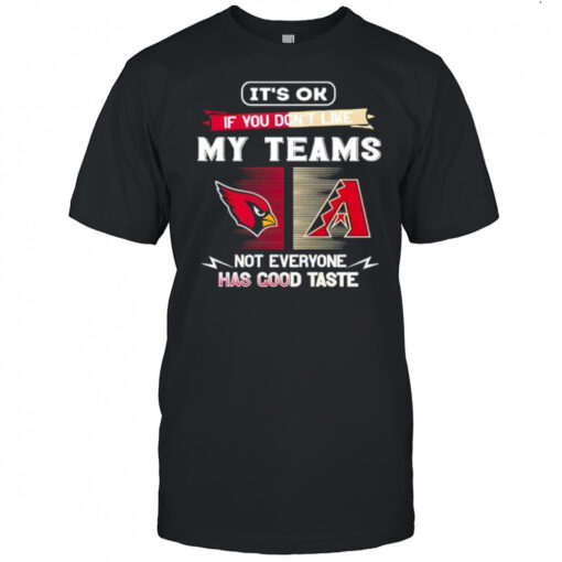 Elevate your game-day style and stand out in the crowd with our Arizona Cardinals and Arizona Diamondbacks it’s ok if you don’t like my teams not everyone shirt. Embrace the camaraderie of fellow fans and unite in spirit as you celebrate each touchdown and home run. This shirt isn’t just apparel; it’s a symbol of belonging to a community of passionate supporters. Don’t miss the chance to own this must-have item and proudly display your allegiance to your favorite teams. Get your hands on this shirt now and let your team spirit shine through every game day!