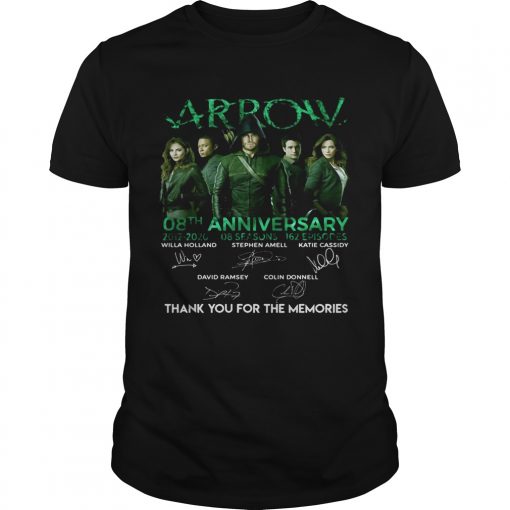 Arrow 08th anniversary 2012 2020 8 seasons 162 episodes thanks you for the memories signatures shir, hoodie, sweater, longsleeve and ladies t-shirt