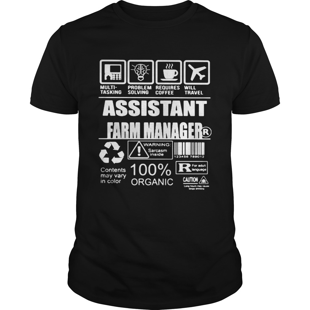Assistant farm manager warning sarcasm inside contents may vary in color 100 organic shirt, hoodie, sweater, longsleeve and ladies t-shirt