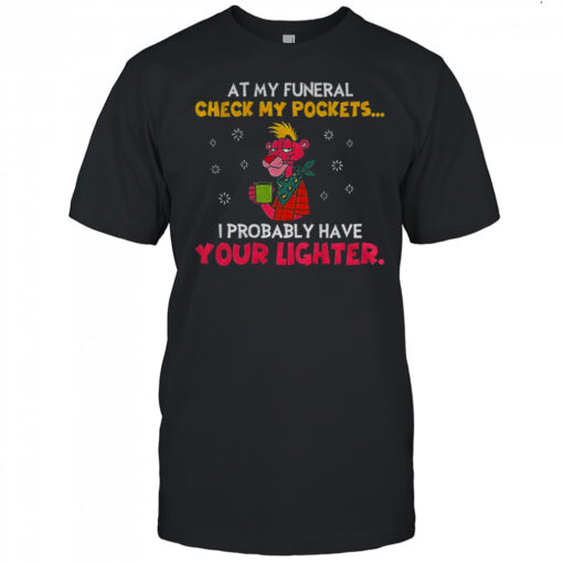 For those seeking more than just attire, At my funeral check my pockets I probably have your lighter shirt offers a unique opportunity to carry a piece of someone special with them always. Whether as a gift to yourself or a meaningful gesture to a friend or family member, this shirt symbolizes the enduring power of relationships and the beauty of shared experiences. So, why wait? Embrace this touching concept and let this shirt be a reminder that love and memories are timeless. Wear it proudly, hold onto the nostalgia, and know that the connections we forge in life are never truly lost. Get your own At my funeral check my pockets I probably have your lighter shirt today and carry a piece of heartwarming nostalgia wherever you go.