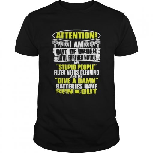 Attention I Am Out Of Order Until Further Notice My Stupid People Shirt