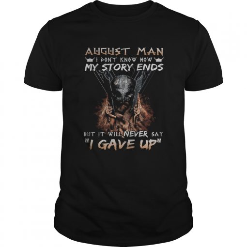 August man I dont know how my story ends but it will never say I gave up shirt, hoodie, sweater, longsleeve and ladies t-shirt