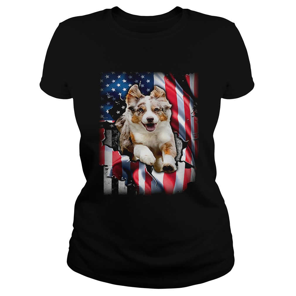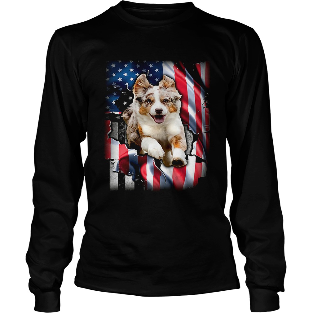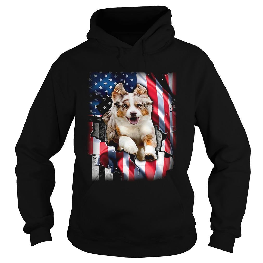 Australian Shepherd Aussie inside American flag shirt, hoodie, sweater and V-neck t-shirt