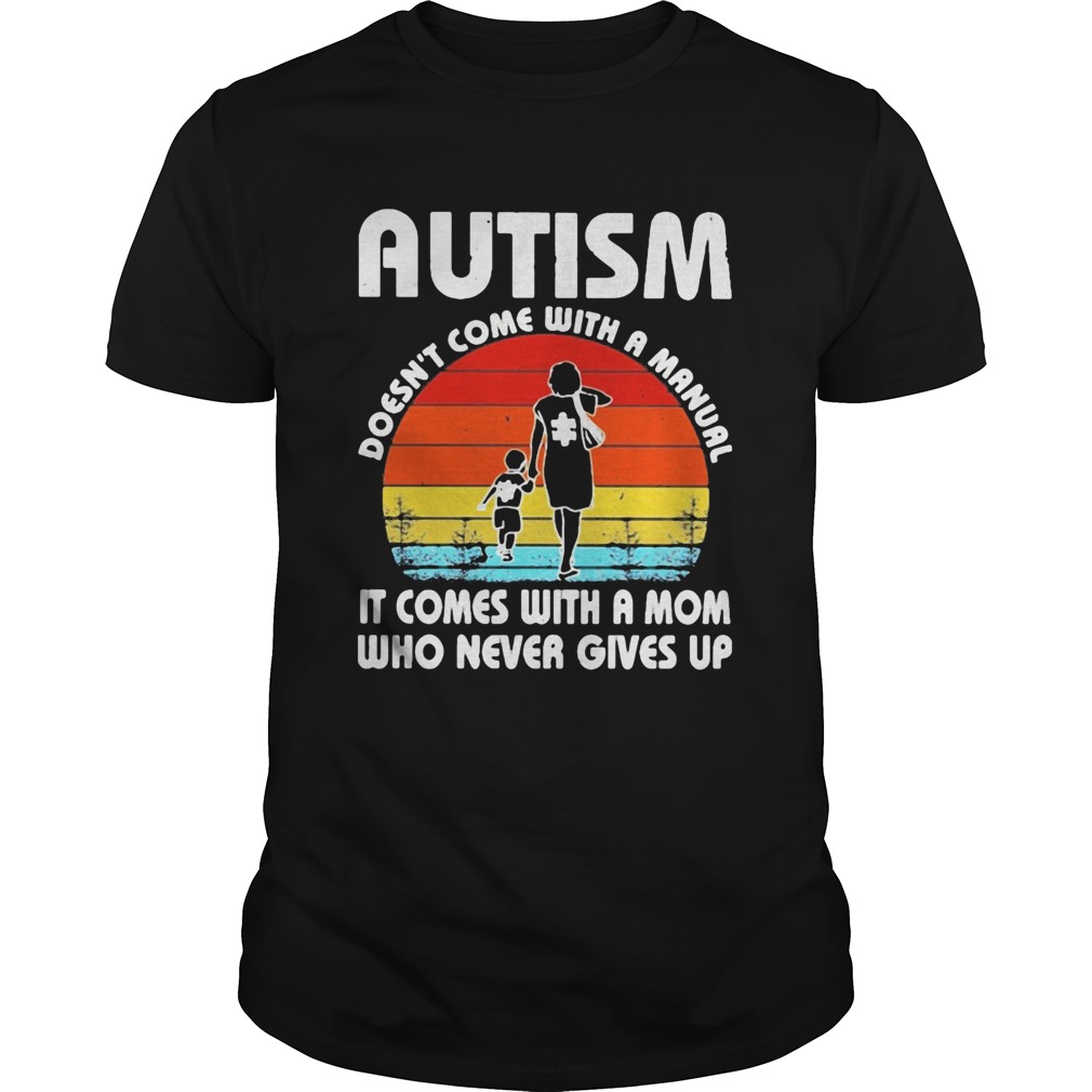 Autism doesnt come with a manual it comes with a mom who never gives up vintage shirt, hoodie, sweater, longsleeve and ladies t-shirt
