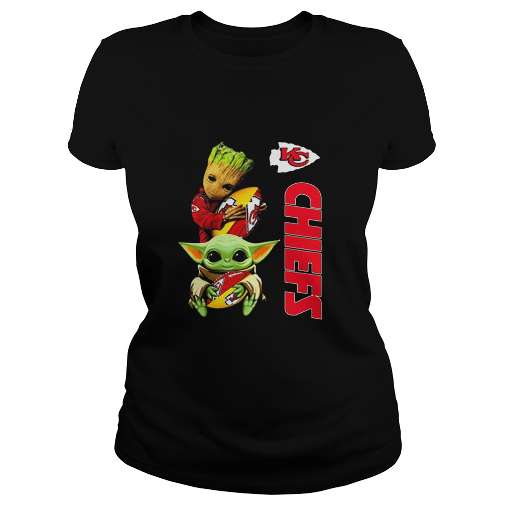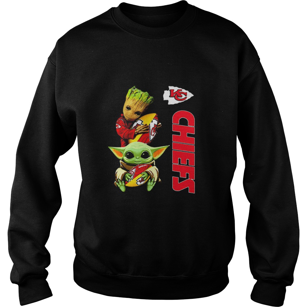 baby yoda and baby groot hug kansas city chiefs shirt, hoodie, sweater, longsleeve and ladies t-shirt