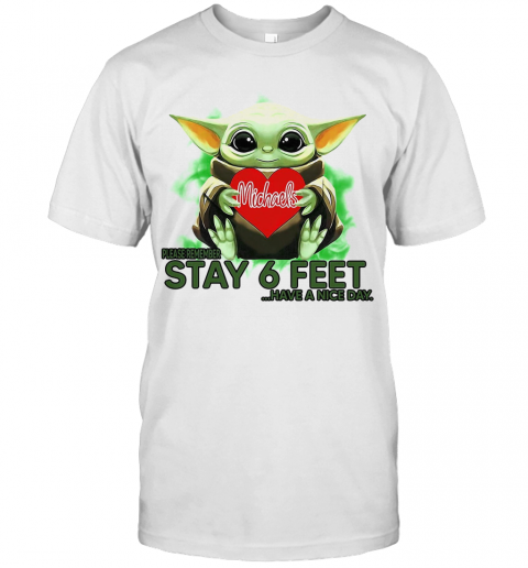 Is oil-based so cleaning Baby Yoda hug Michaels Stores please stay 6 feet Have a nice day shirt T-Shirt . it will require chemicals. If you’re environmentally friendly, you will tend to avoid.Despite that aspect, it is definitely the most popular and it can be printed on both black or white colored shirts. Keep in mind that anything printed over a white base will pop and shine a little bit more. Also, consider that each color is adding extra cost. So the more colors you choose for a t shirt design, the more expensive gets.