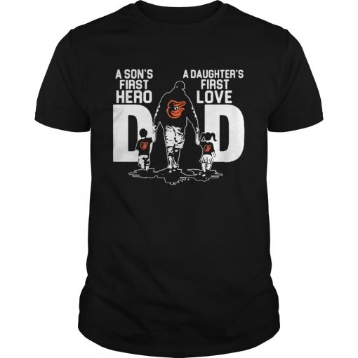 Baltimore Orioles Dad a sons first hero a daughters firstlove shirt, hoodie, sweater, longsleeve and ladies t-shirt