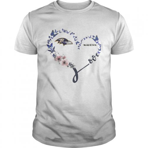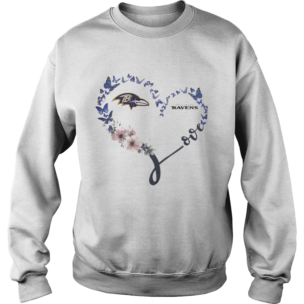 Baltimore Ravens Heart Butterfly And Flowers Shirt, hoodie, sweater, longsleeve and ladies t-shirt