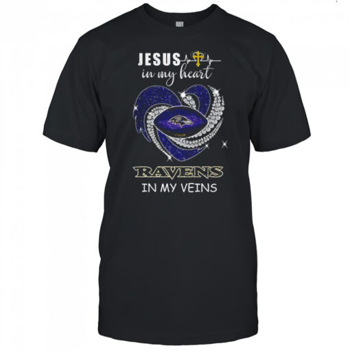 Baltimore Ravens Jesus in my heart Raveins in my veins shirt, hoodie, sweater, longsleeve and ladies t-shirt