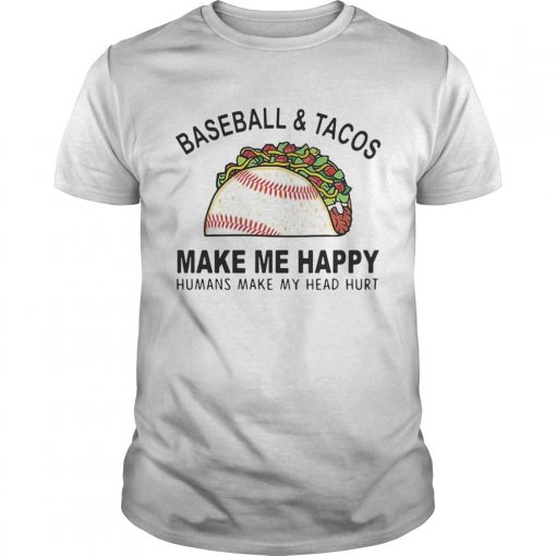 Baseball and tacos make me happy humans make my head hurt shirt, hoodie, sweater, longsleeve and ladies t-shirt