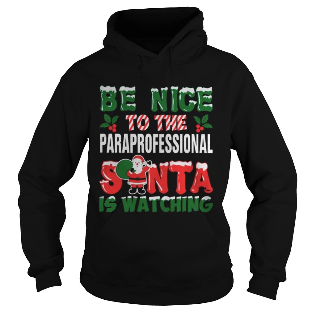 Be nice to the paraprofessional Santa is watching Christmas ugly shirt, hoodie, sweater, longsleeve and ladies t-shirt