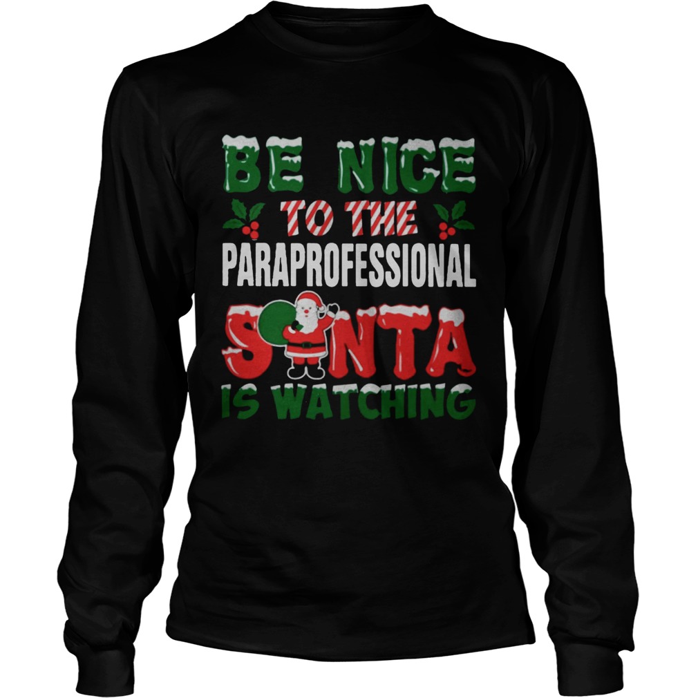 Be nice to the paraprofessional Santa is watching Christmas ugly shirt, hoodie, sweater, longsleeve and ladies t-shirt