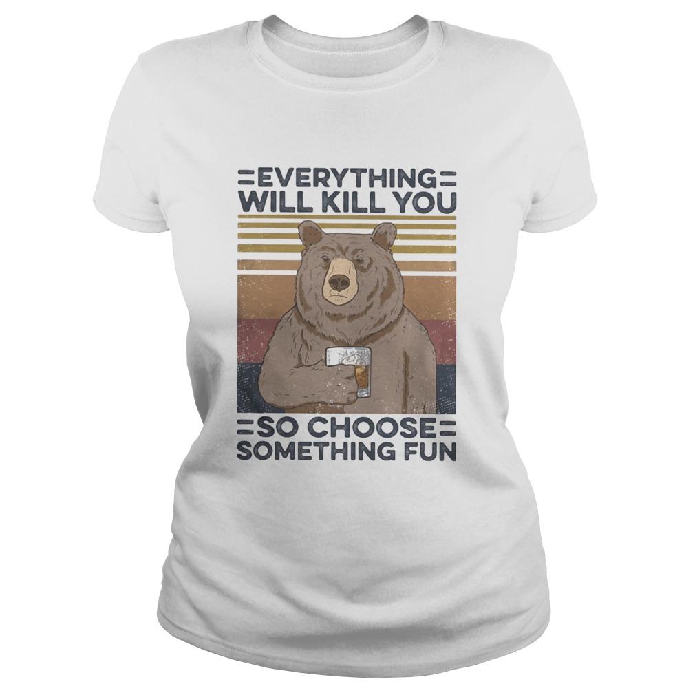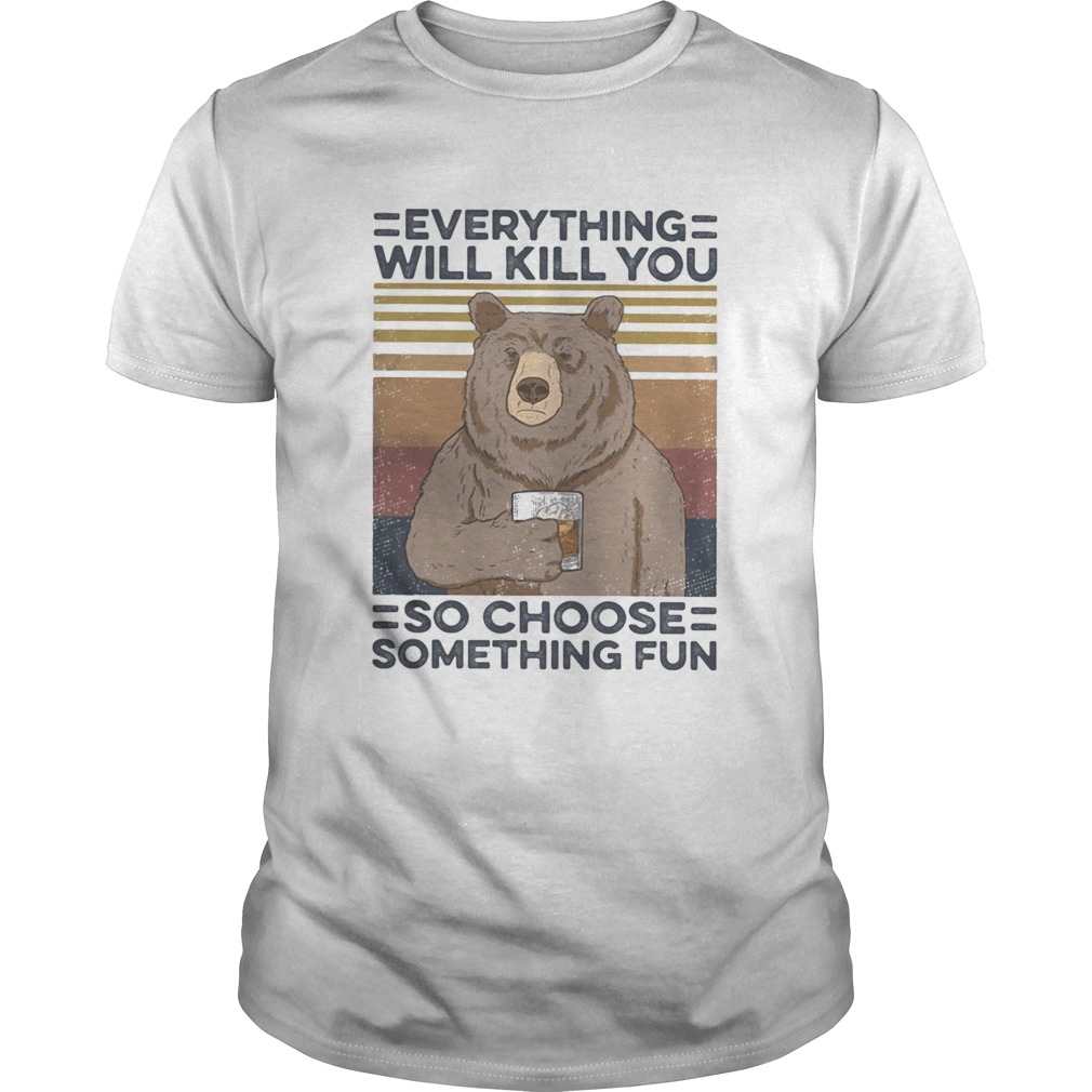 Bear drink Bourbon Everything will kill you so choose something fun vintage retro shirt, hoodie, sweater, longsleeve and ladies t-shirt