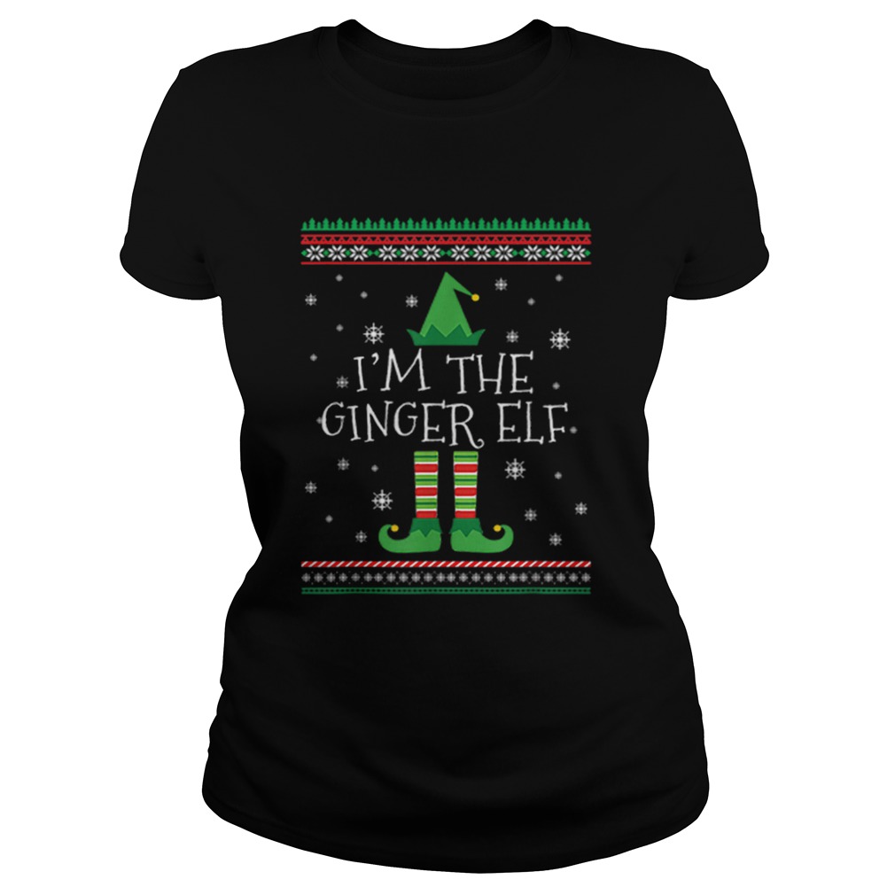 A lot of print on demand printers Beautiful Im The Ginger Elf Ugly Christmas PJ shirt . will use this method. Dye sublimation is your design printed out onto a giant piece of paper. This will be big enough to cover the entire t-shirt. For this, we use a special type of paper called sublimation paper. First, the design is printed out on that giant sheet of sublimation paper. After that, is turned over, so that the ink touches the t-shirt.