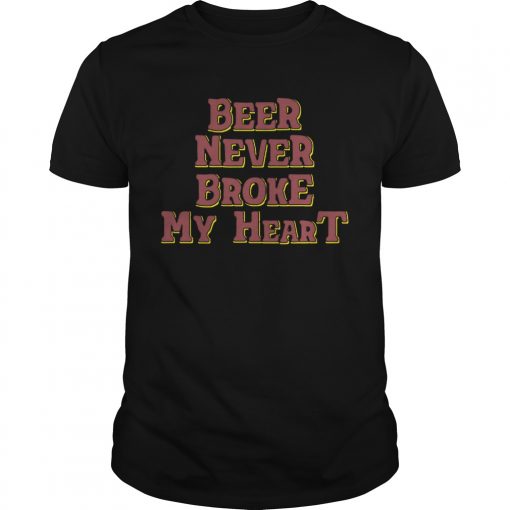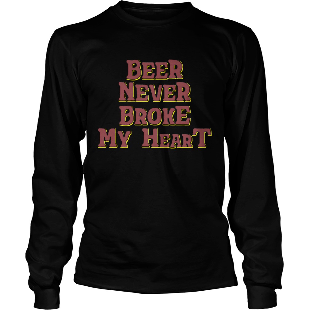 Beer never broke my heart shirt, hoodie, sweater, longsleeve and ladies t-shirt