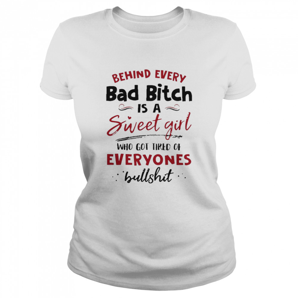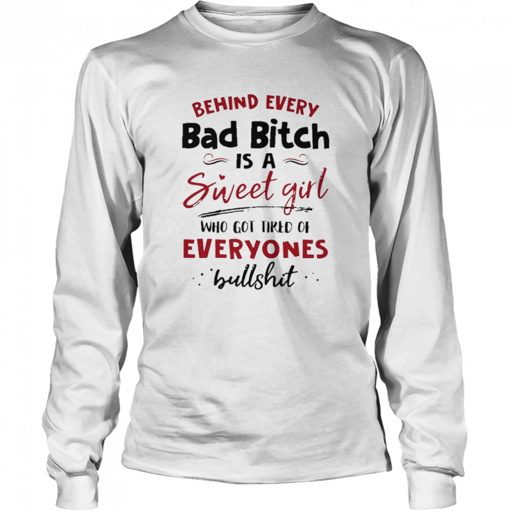 Behind Every Bad Bitch Is A Sweet Girl Who Got Tired Of Everyones Bullshit shirt, hoodie, sweater, longsleeve and ladies t-shirt