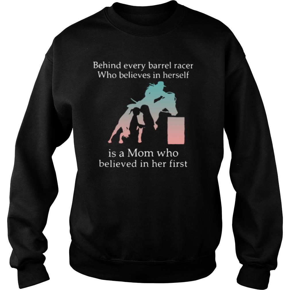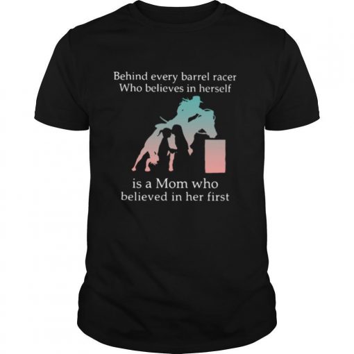 Behind Every Barrel Racer Who Believes In Herself Is A Mom Who Believed In Her First shirt, hoodie, sweater, longsleeve and ladies t-shirt