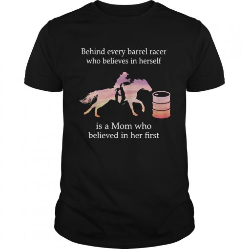 Best Behind every barrel racer who believes in herself is a Mom who believed in her first shirt