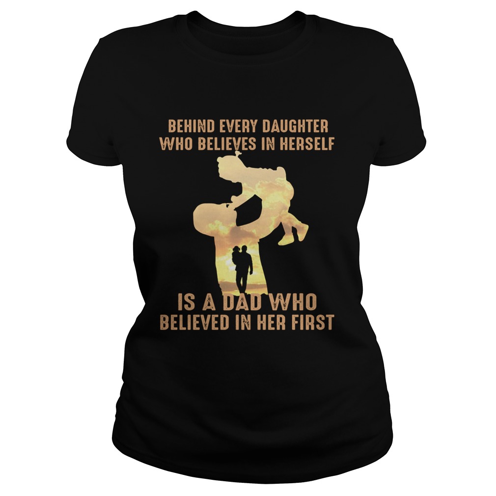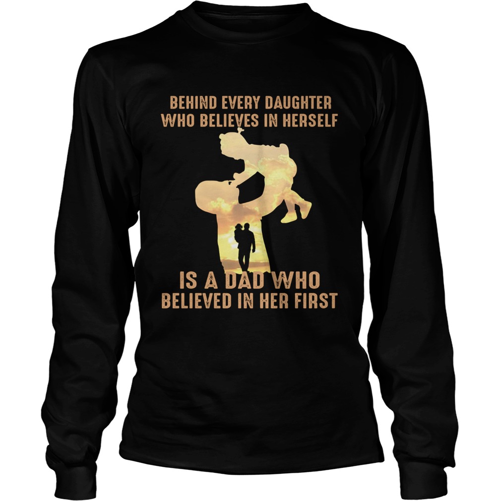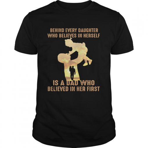 Behind every daughter who believes in herself is a dad who shirt, hoodie, sweater, longsleeve and ladies t-shirt