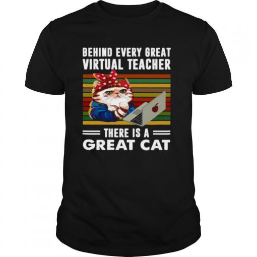 Behind every great virtual teacher there is a great cat Vintage shirt, hoodie, sweater, longsleeve and ladies t-shirt