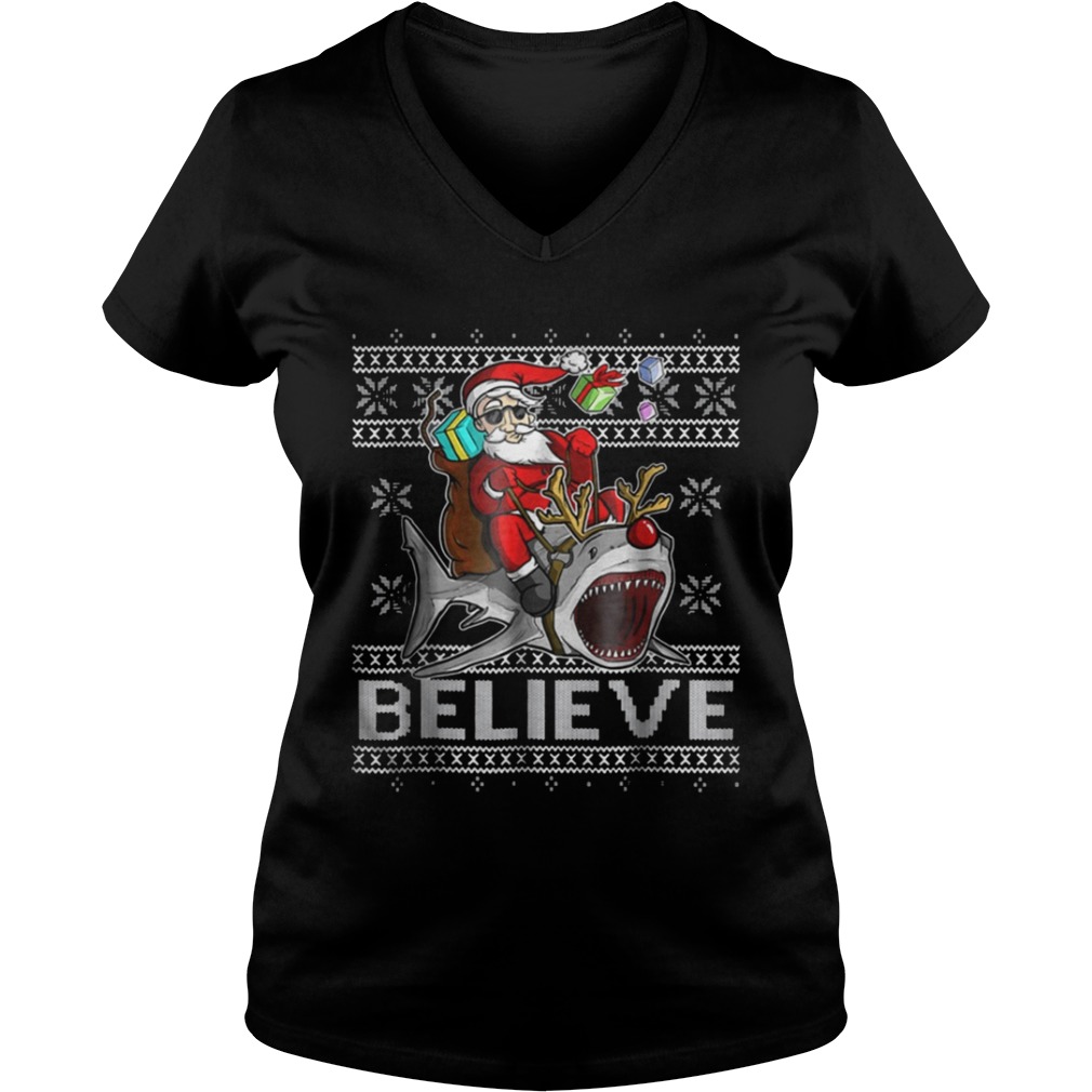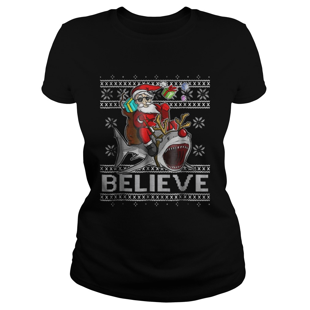 Best Believe in Santa Riding Shark Christmas Ugly Sweater