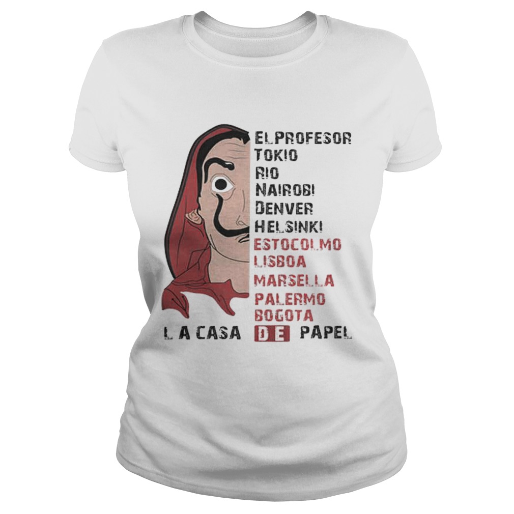 If we believe that Jesus died for our sins, we can ask Him to come into our Then, we are clean and made whole Bella Ciao Elprofesor Tokio Rio Nairobi Denver Helsinki Estocolmo Lisboa shirt . We can know that heaven is a place where we can go to when this life is over. But if we confess our to him, he is faithful and just to forgive us and to cleanse us from every wrong. We can truly be happy at Christmas! No matter what may be happening, we can know that we are His children. We then become sons and daughters of God. Heaven will be our home one day.So Joseph also went up from the town of Nazareth in Galilee to Judea, to Bethlehem the town of David, because he belonged to the house and line of David. He went there to register with who was pledged to be married to him and was expecting a child. While they were there, the time came for the baby to be born, and she gave birth to her firstborn, a son.She wrapped him in cloths and placed him in a manger, because there was no room for them in the inn. And there were shepherds living out in the fields nearby, keeping watch over their flocks at night.