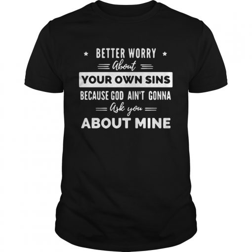 Better Worry About Your Own Sins Because God Aint Gonna Ask You About Mine shirt, hoodie, sweater, longsleeve and ladies t-shirt