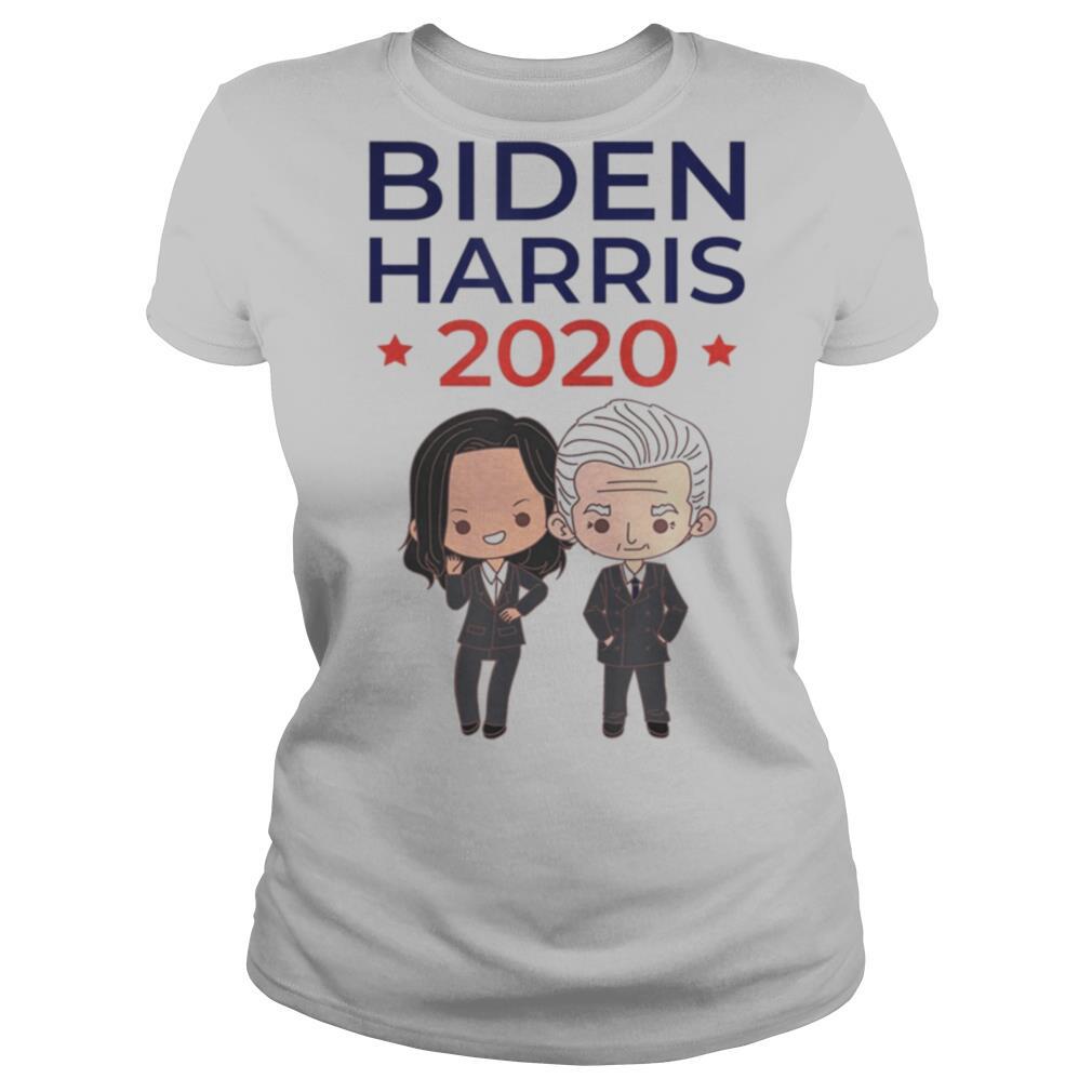 (Hoodie Tee)Waterbase inks are as they sound, water-based Biden Harris 2020 shirt.This makes them eco-friendly and easy to clean up. The water is mixed with a dye or pigment and then evaporated during the drying stage of printing. You have a slight hand (soft feel) after printing with waterbase inks, but it becomes no-feel after its first wash. Water-based printing allows the ink to blend into the shirt instead of sitting on top of it. One downside of using waterbase inks is that they are less opaque, so the color of the shirt will influence the print itself. For example, a bright red ink on a black shirt will come out as a very dark red. Waterbase delivers the best results on white or very light colored shirts with dark colored inks. When printing lighter colored inks on dark colored shirts, the ink colors will change resulting in a more vintage look. Because of this we can’t guarantee color matching when using waterbase inks. Discharge is waterbase ink with an added bleaching agent. This allows us to print waterbase ink on dark garments by bleaching out the color of the shirt and replacing it with a new color.