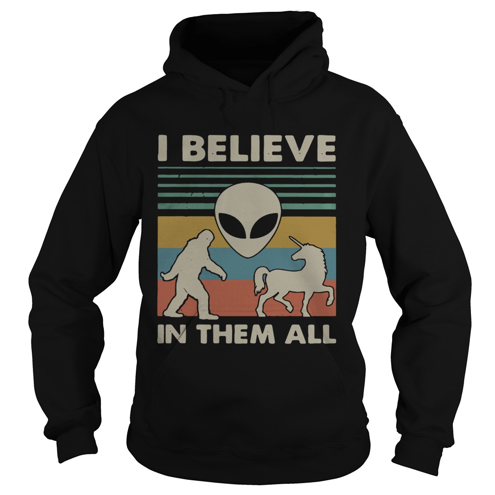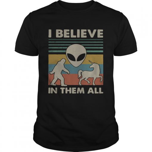 Bigfoot Alien Unicorn I believe in them all vintage shirt, hoodie, sweater, longsleeve and ladies t-shirt