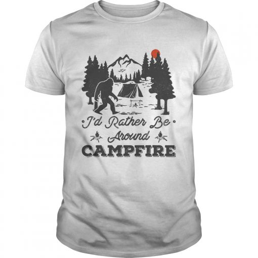 Bigfoot id rather be around campfire sunset shirt, hoodie, sweater, longsleeve and ladies t-shirt