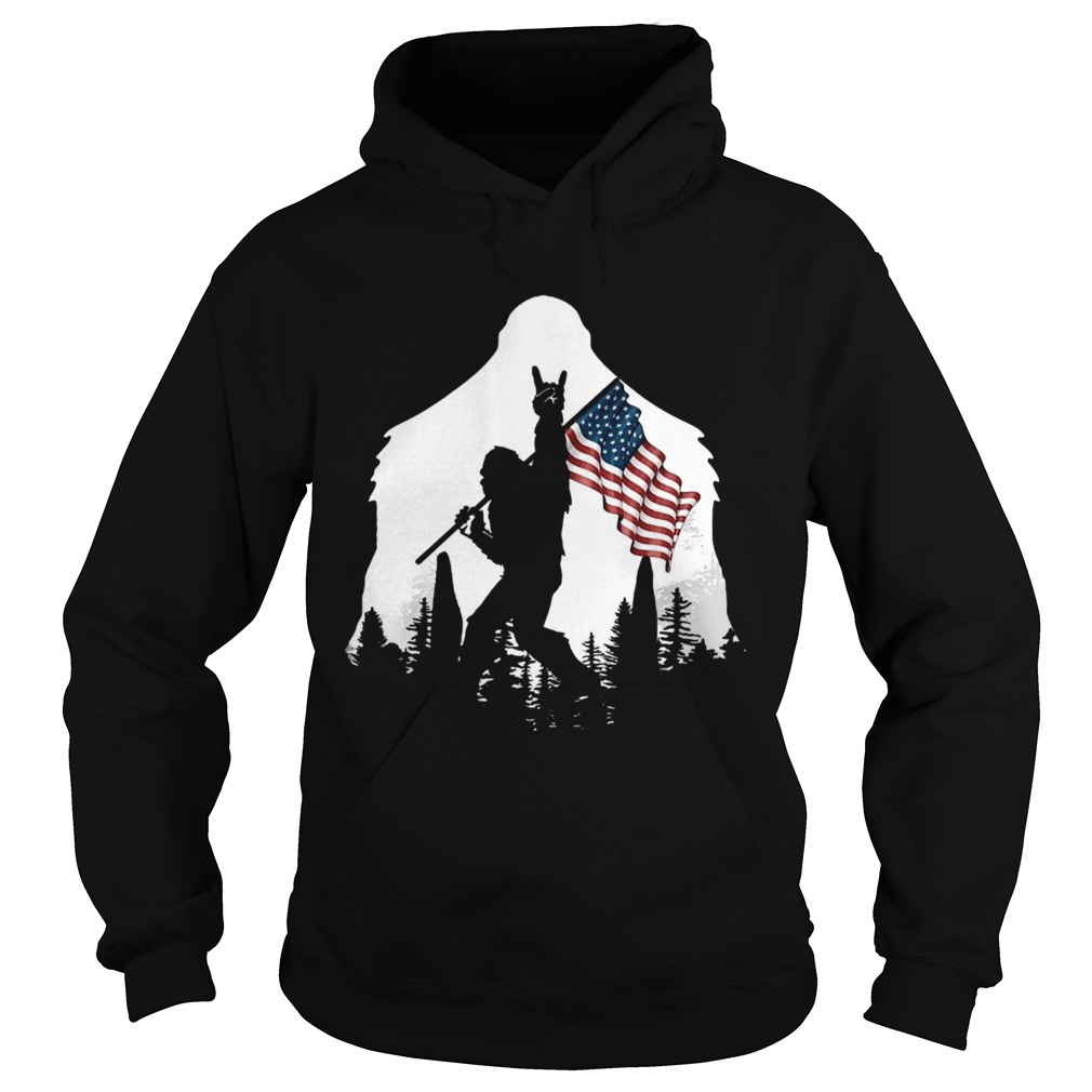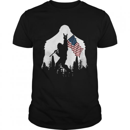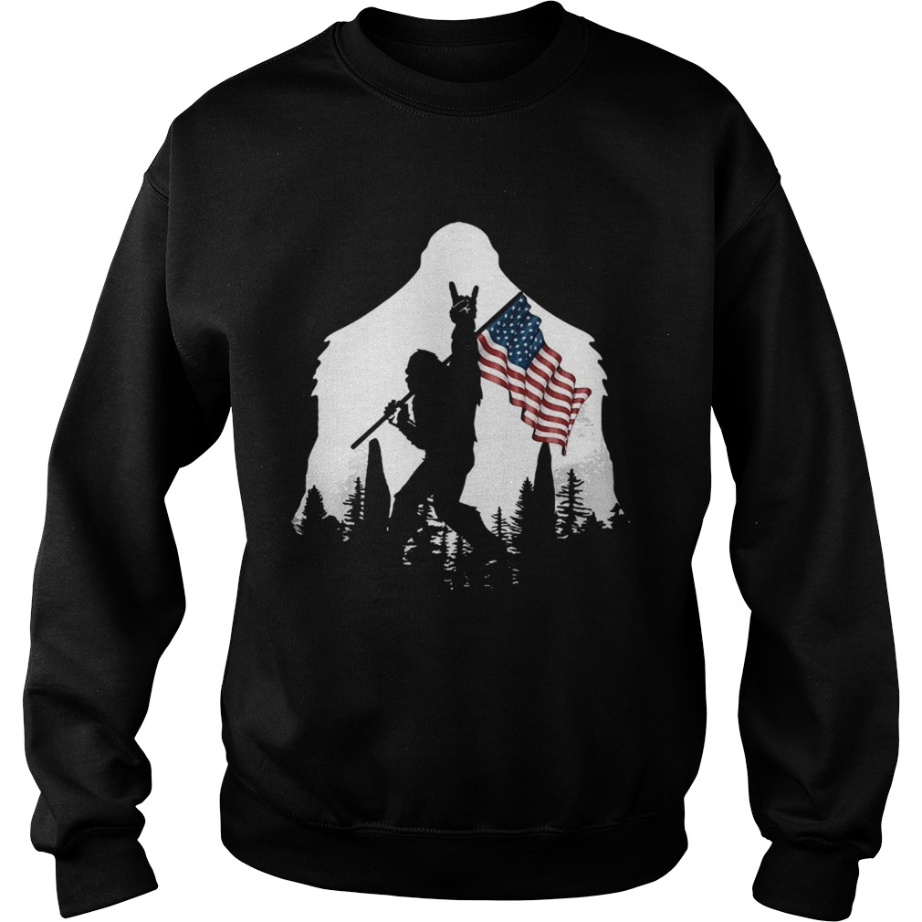 Bigfoot Rock And Roll Usa Flag In The Forest shirt, hoodie, sweater, longsleeve and ladies t-shirt