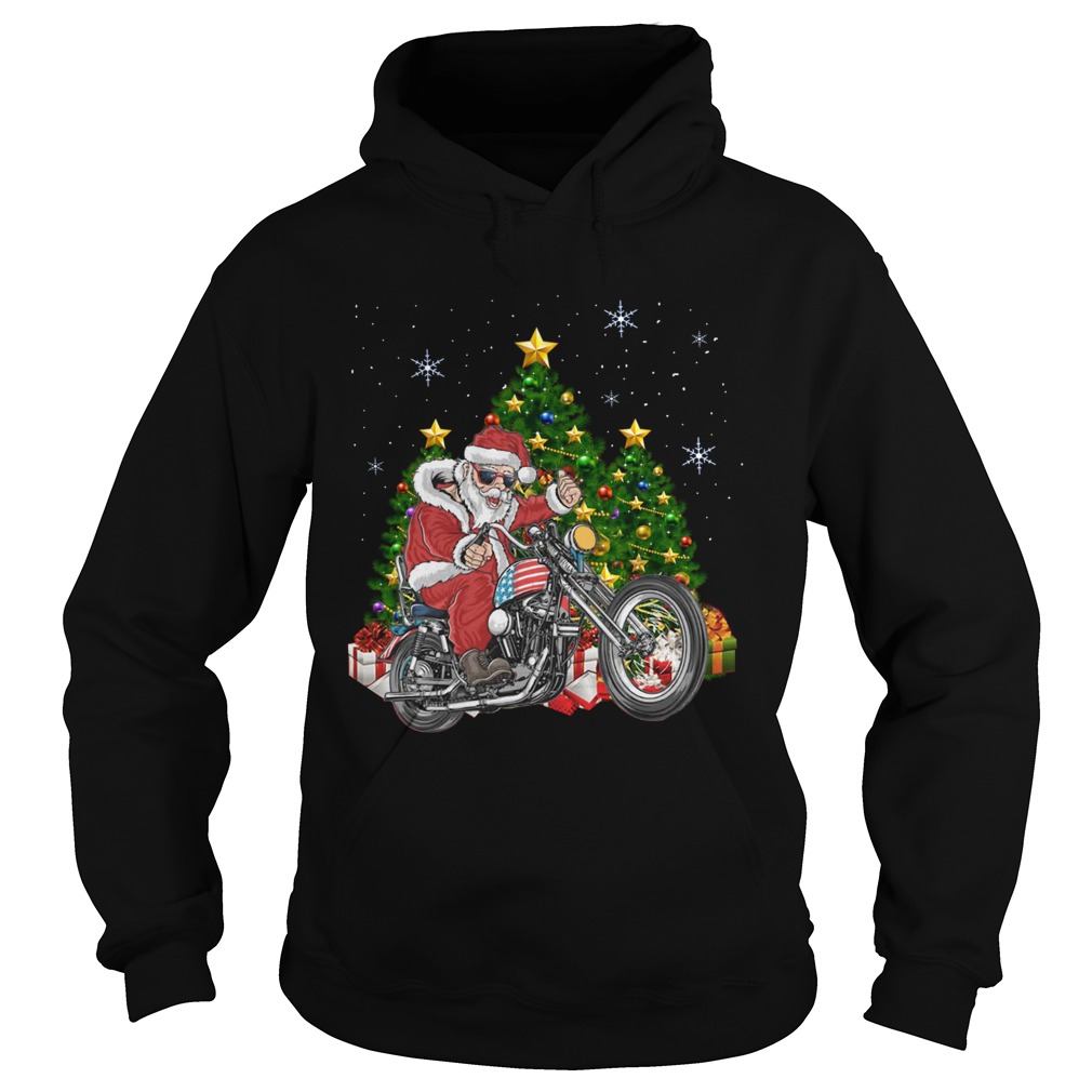 Biker Santa Motorcycle Merry Christmas Tree shirt, hoodie, sweater, longsleeve and ladies t-shirt