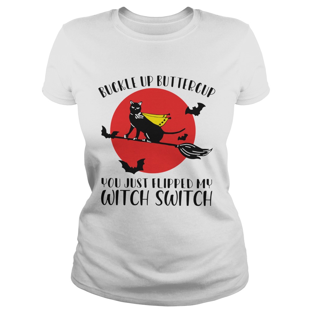 Black cat buckle up buttercup you just flipped my witch switch moon shirt, hoodie, sweater, longsleeve and ladies t-shirt