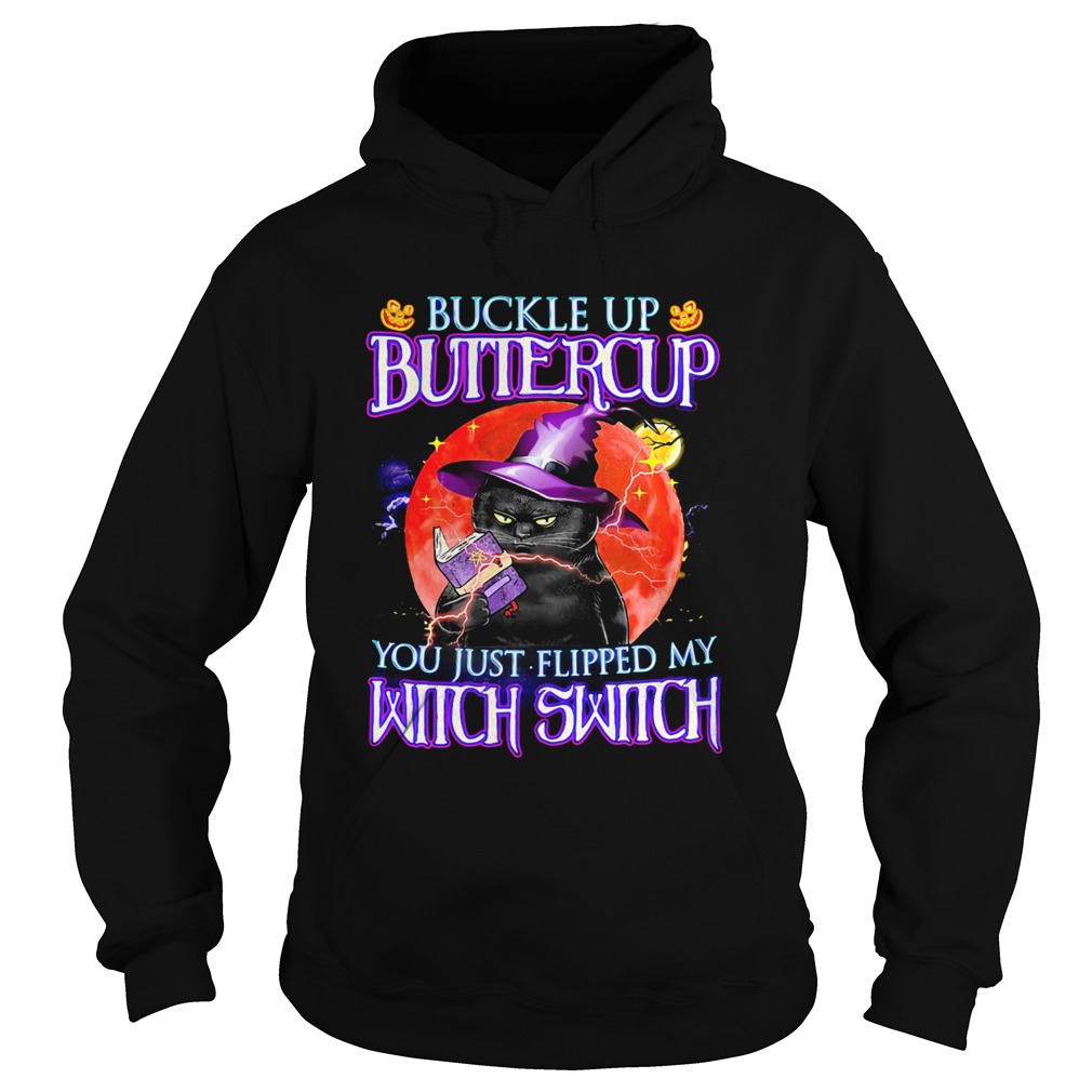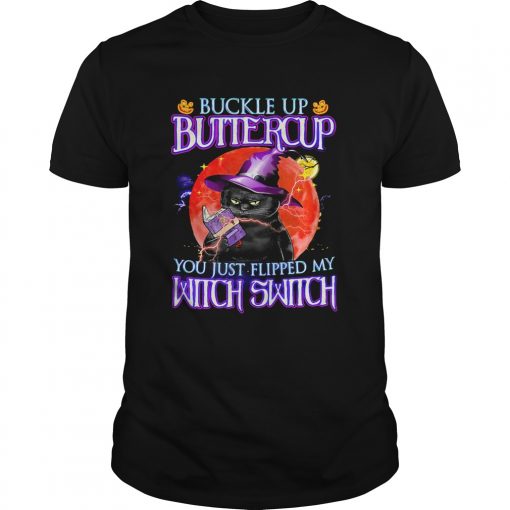 Black Cat Buckle Up Buttercup You Just Flipped My Witch Switch Sunset Halloween shirt, hoodie, sweater, longsleeve and ladies t-shirt