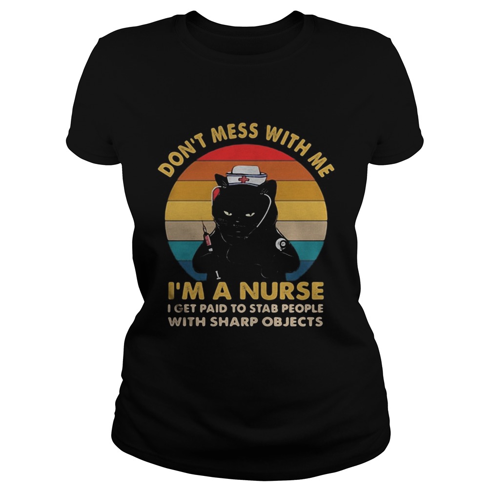 Black cat dont mess with me im a nurse i get paid to stab people with sharp objects vintage retro, hoodie, sweater, longsleeve and ladies t-shirt