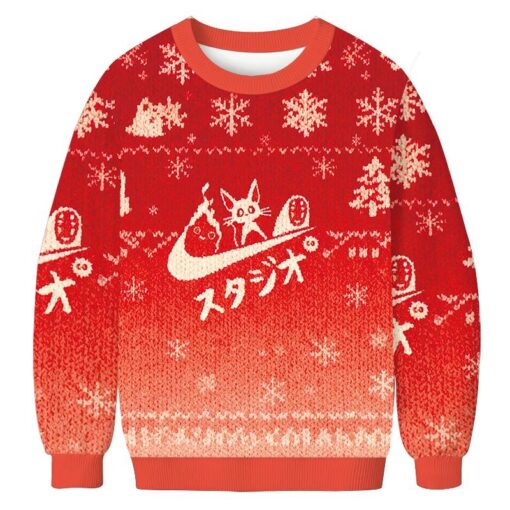 Let me transport you to a world where whimsy meets nostalgia with our Black Cat Ghibli Vintage Christmas Ugly Sweatshirt. This enchanting sweatshirt encapsulates the essence of the holiday season with a playful twist. Picture a charming black cat adorned in a festive Christmas hat, set against a backdrop of vintage Ghibli-inspired art. This exquisite design combines the beloved elements of the holiday season with a touch of retro flair, making it a unique and eye-catching addition to your winter wardrobe. Whether you’re cuddled up by the fireplace or out spreading cheer, this sweatshirt is sure to spark joy and admiration wherever you go.