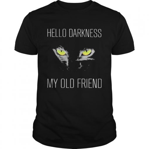 Black cat hello darkness my old friend night shirt, hoodie, sweater, longsleeve and ladies t-shirt