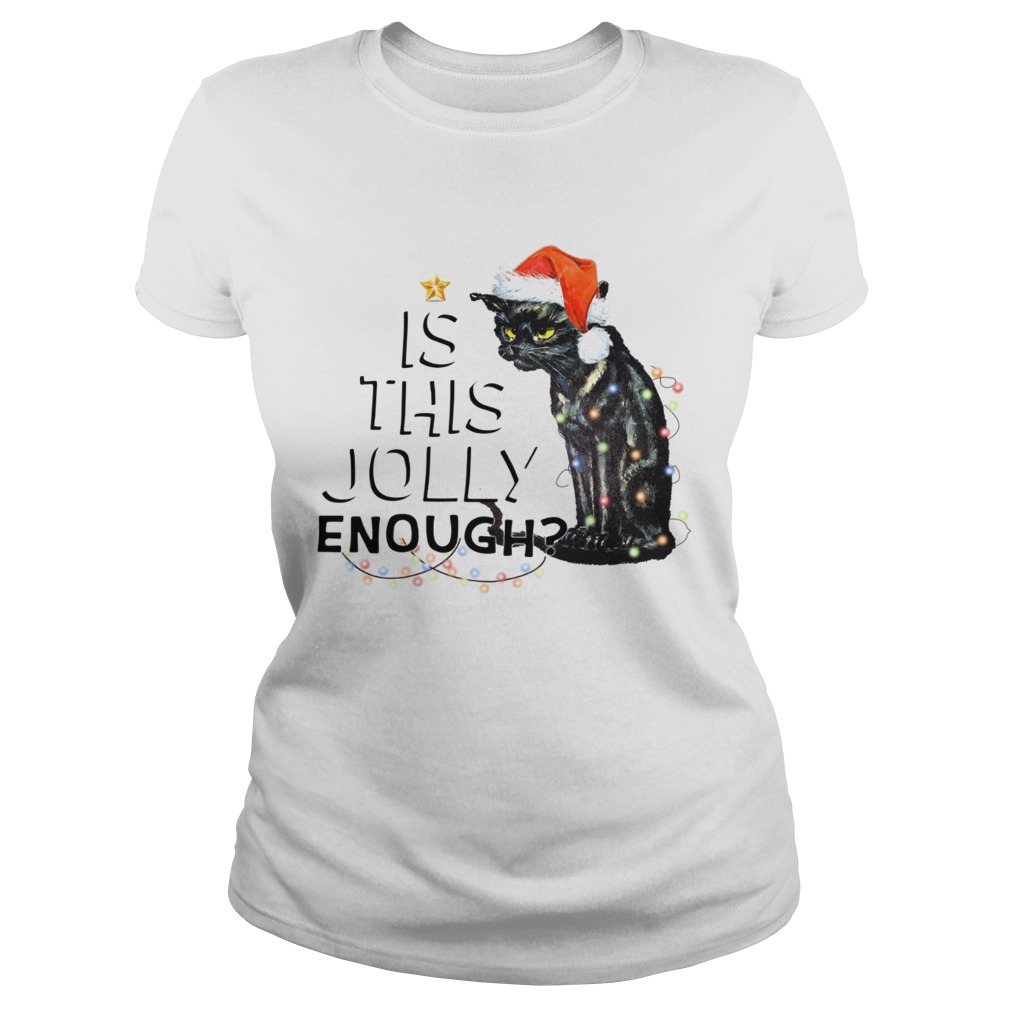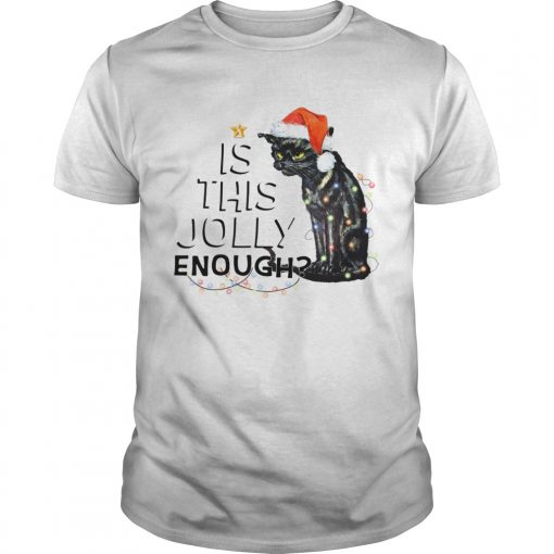 Black cat is this Jolly enough light Christmas shirt, hoodie, sweater, longsleeve and ladies t-shirt