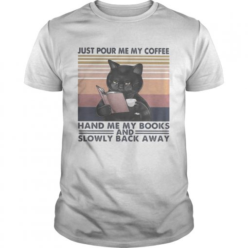 Black Cat Just pour me my coffee hand me my books and slowly back away vintage retro shirt, hoodie, sweater, longsleeve and ladies t-shirt