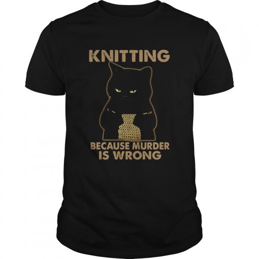 Black Cat Knitting Because Murder Is Wrong shirt, hoodie, sweater, longsleeve and ladies t-shirt