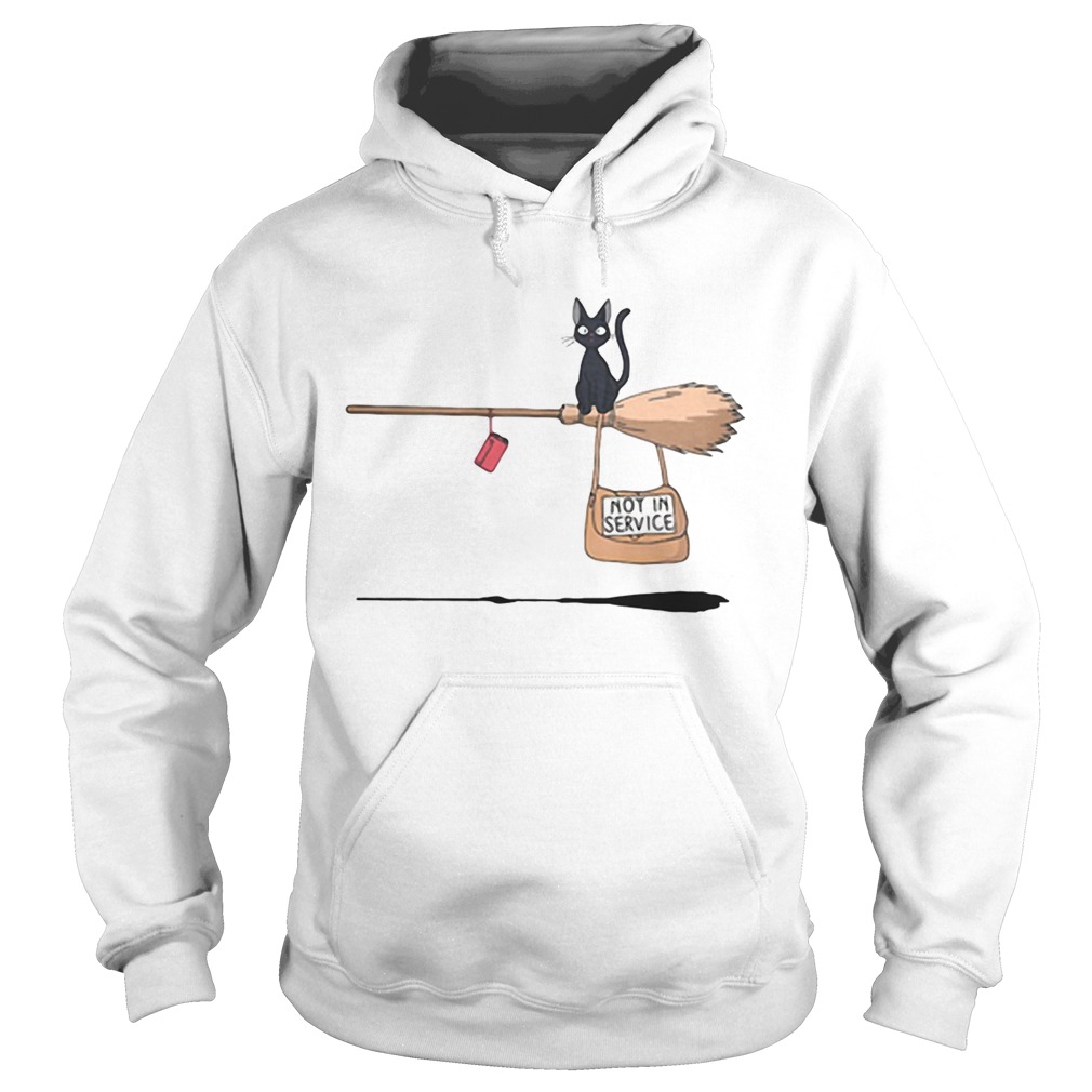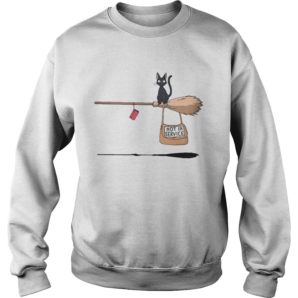 Black cat on broomstick not in service shirt, hoodie, sweater, longsleeve and ladies t-shirt