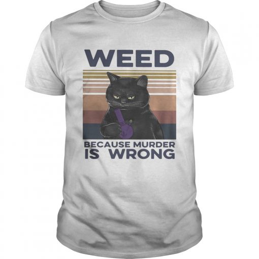 Black Cat Weed because murder is wrong vintage retro shirt, hoodie, sweater, longsleeve and ladies t-shirt
