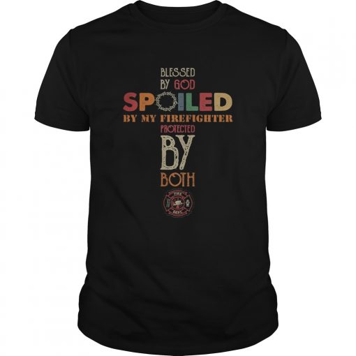Blessed by god spoiled by my firefighter protected by both logo shirt, hoodie, sweater, longsleeve and ladies t-shirt